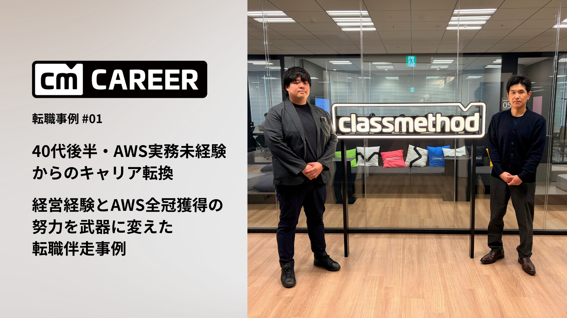CM キャリアは、クラスメソッドグループが展開する転職支援サービスです。今回は異色のキャリアを歩んできた藤村聡さんの転職事例をご紹介します。「求職者の経歴を、点ではなく線で捉え、強みを見つけ出す」を体現した転職事例にはどのようなストーリーがあったのでしょうか。藤村さんと共に、今回の転職に伴走したCM キャリア 事業責任者の小笠原に話を伺います。